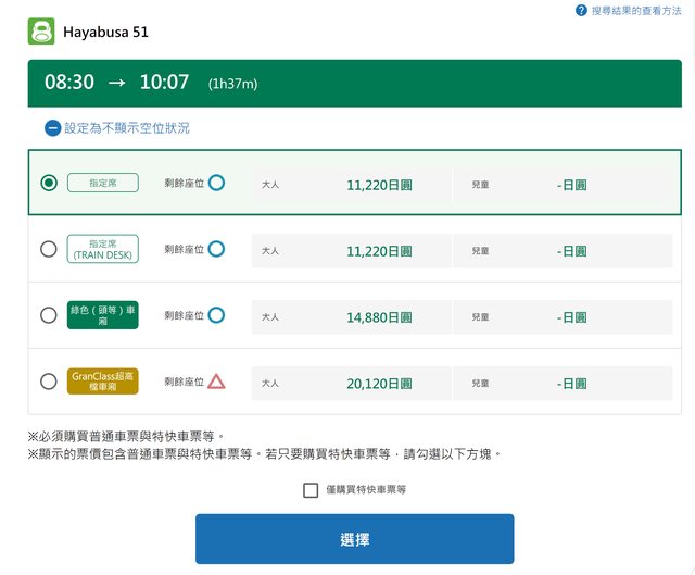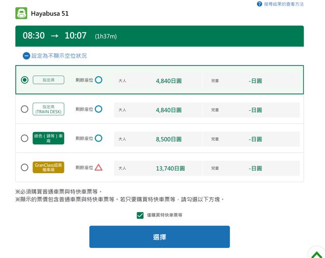要點選僅購買特快車票等,就是只買特急券