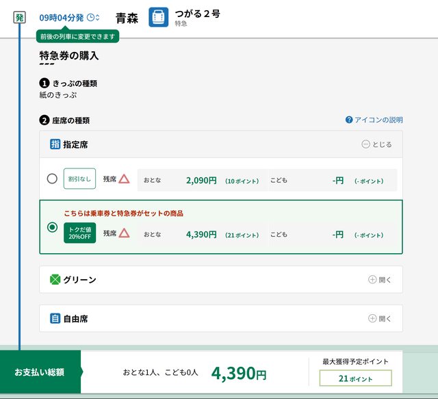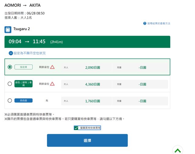 : 請問先上ekinet繁中網站訂仙台到新青森的新幹線只購買指定席