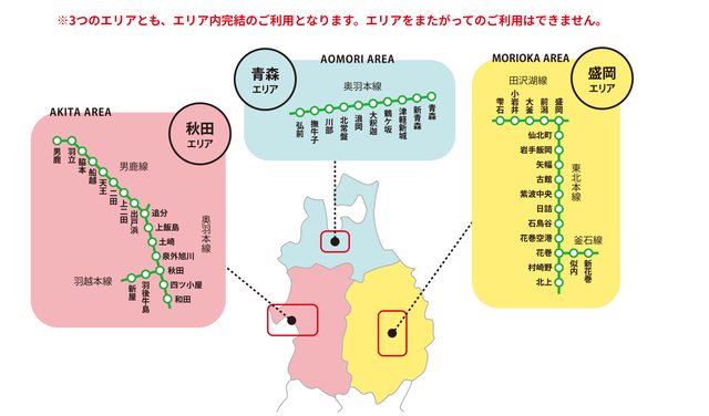 : 請問三段路線:仙台到青森,青森到秋田,秋田到仙台