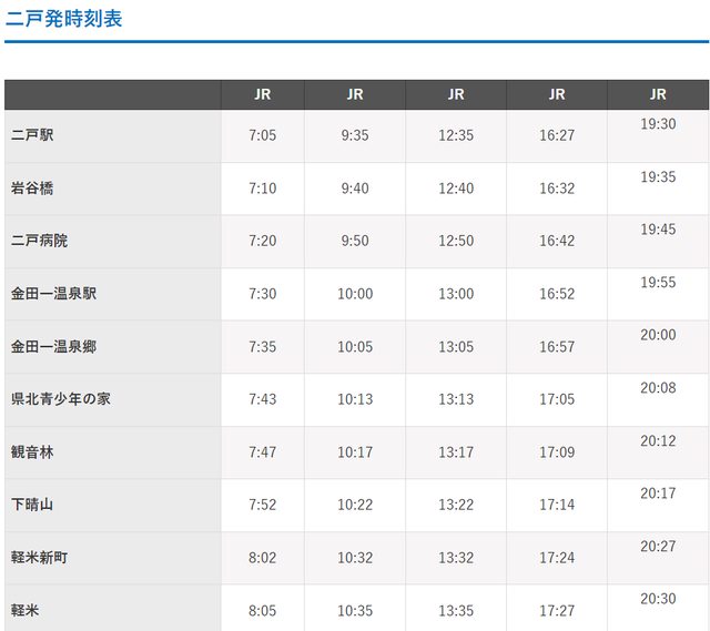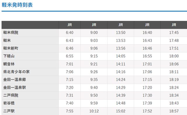 首先不管你人住在岩手的哪裡,都先抵達「二戶站」,再轉巴士到輕米,是最方便的方式