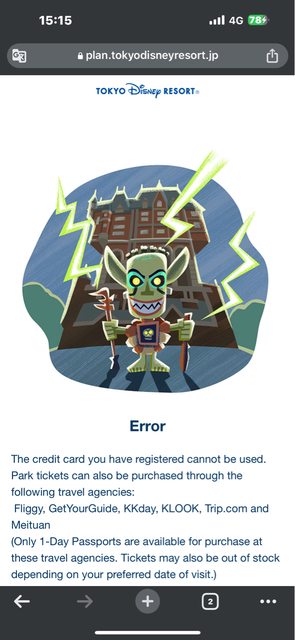 → joneall : card, JCB都試過, 最後是在KLOOK買. 入園後DPA倒是 06/30 18:18