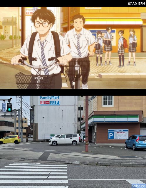 還原度很高 但因為算是通學路 建議不要在相關時間來拍 2.セブン-イレブン 七尾小島町店