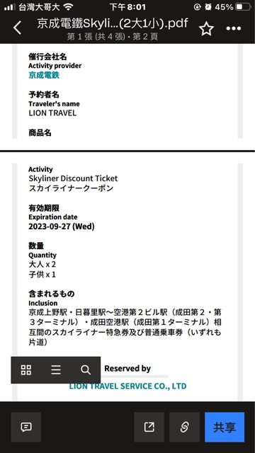 1. 讓售品項:skyliner京成電鐵成田機場-日暮里、京成上野單程票券,2大1小