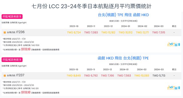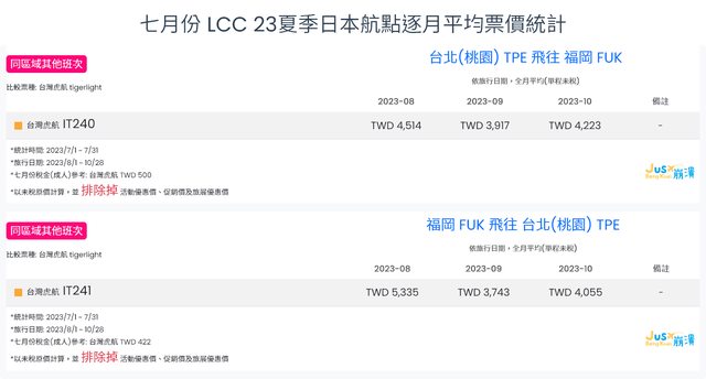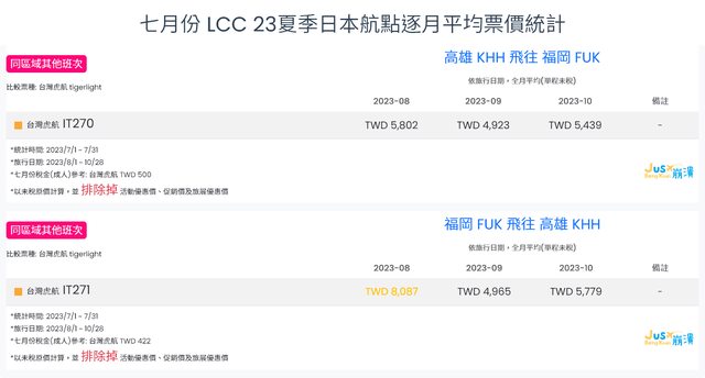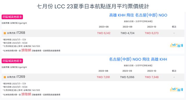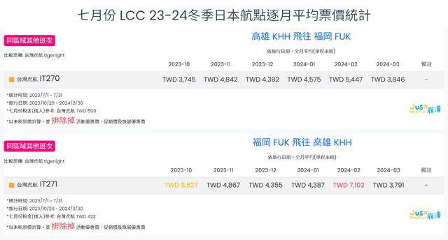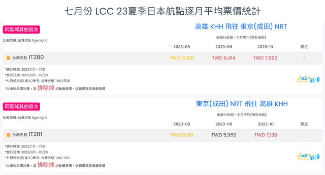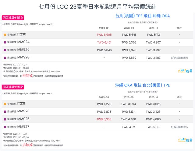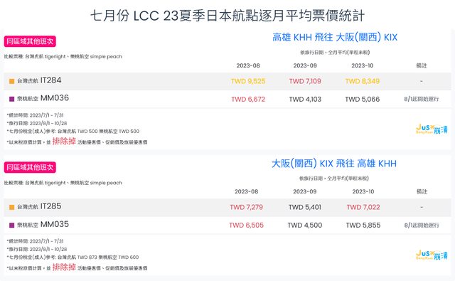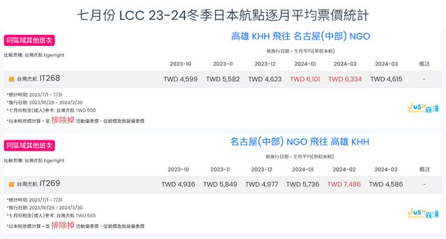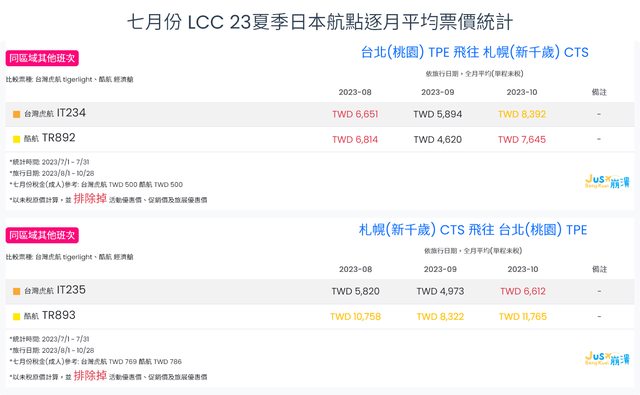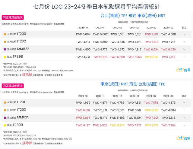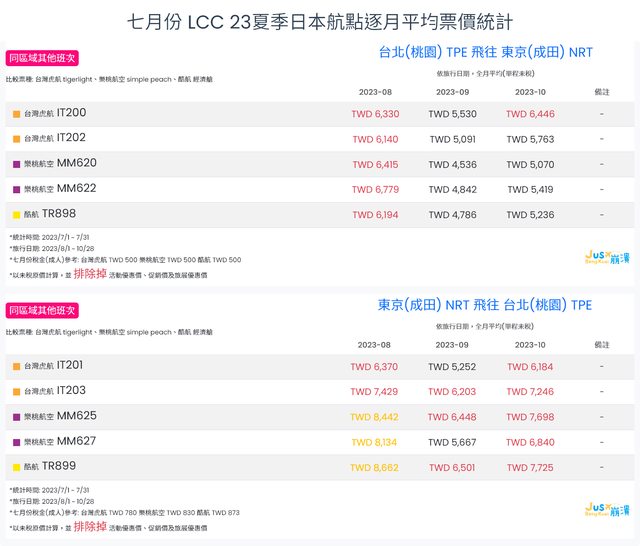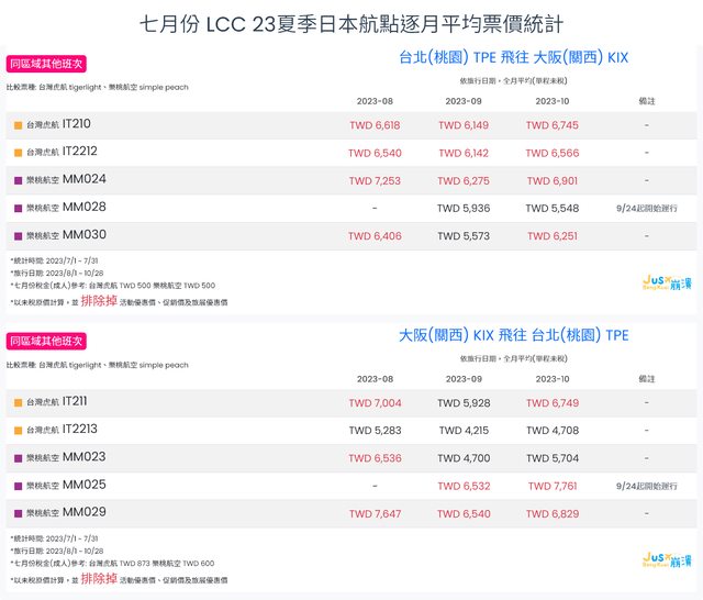 標題[分享] 7月份 LCC 23夏、23冬逐月平均票價統計