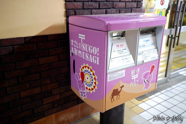 車站門口粉紅色系的沙丘彩繪郵筒,還有因幡兔子,也相當可愛。