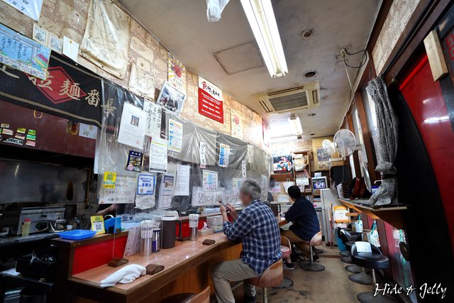 店內雖然有些陳舊,但疫情下的產物隔板、透明廉都還沒撤掉,牆上掛著「麵類全部都是