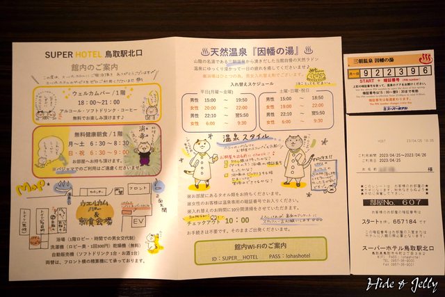 飯店說明資料則沒有貓貓了,但多了附近餐廳的折價券,米子駅附近明顯比鳥取熱鬧,餐