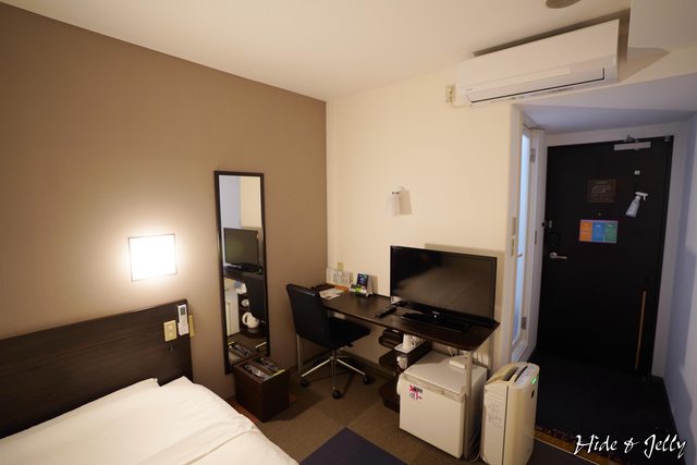 房間內的空間算蠻緊湊的,但對於第一天的住宿來說,不用整理行李還算夠用,床的幅寬