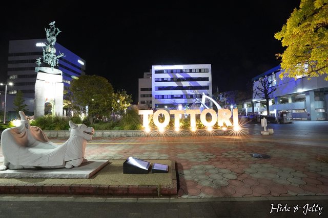 來分享一下鳥取駅的周邊。睽違7年的鳥取駅,站前也有新的裝置藝術。這「TOTTORI」字