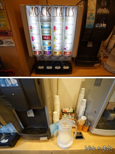 飲料吧也提供相當多選擇,機器上還有混搭飲料的推薦(如柳橙汁+可樂、薑汁汽水+烏龍