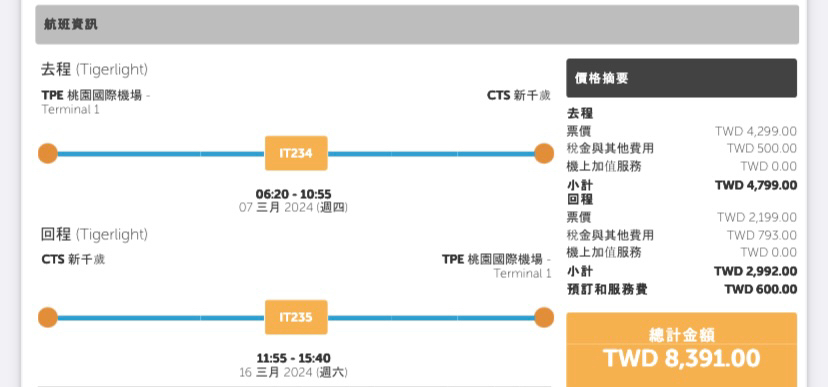 推 Guyinkt : 第一次搶到CTS的票,來回都搶到2199,加托運回程 08/10 10:15
