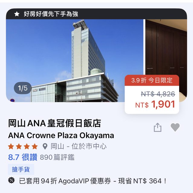 推 likeilike : 請問APA岡山站前和AreaOne 有推嗎? 08/15 08:30