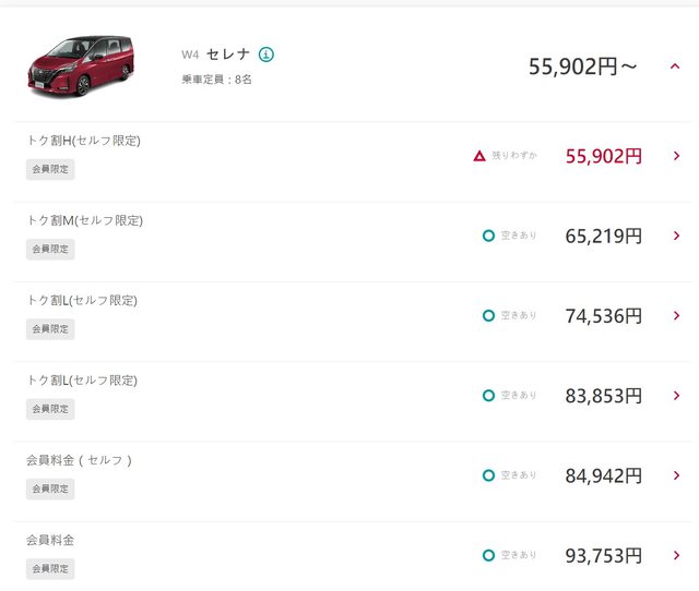 : 輸入預計要租車的日期就跑出很便宜的價格,不過後面出現セルフ限定的字眼