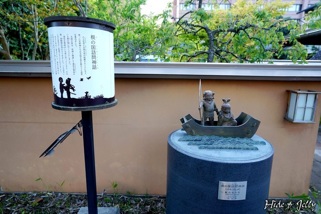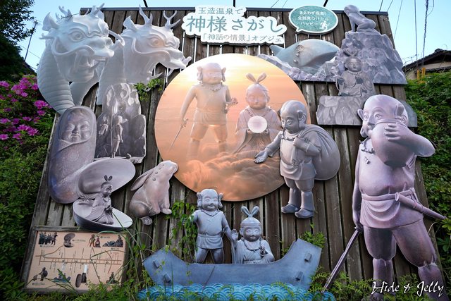 從玉井別館處往回折,車道旁有大型的看板,把玉造溫泉街上的神話雕塑做簡單的介紹,