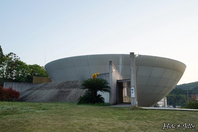 足湯的後面,是造型相當特殊的玉造溫泉公共大浴場「ゆ~ゆ」(YU~YU),像是星艦飛碟