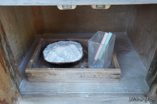 幫白粉地藏化妝的用具與化妝粉,就在白粉地藏下方的木箱內,來到清嚴寺,別忘了也幫