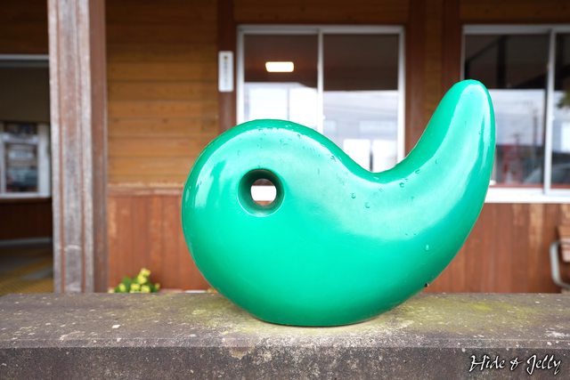 車站的站體雖然有點陳舊,但車站前方的大勾玉,則是嶄新的翠綠塗裝,可見得勾玉對玉