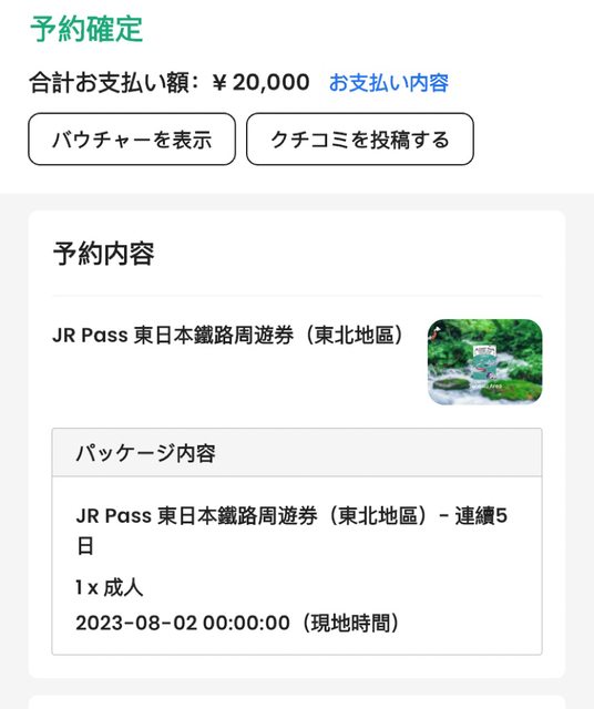 1. 讓售品項:東北JR PASS兌換憑證