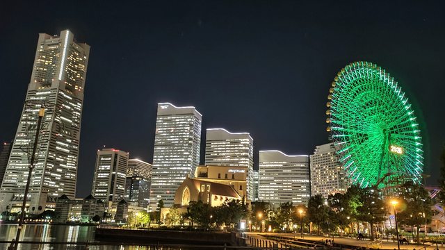 隔天早上睡飽出門購物吃飯後,傍晚就來到了橫濱準備開拍夜景,因為體力不足只挑了幾