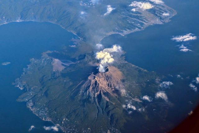 從鹿兒島上空進入日本陸地 首先看到櫻島火山