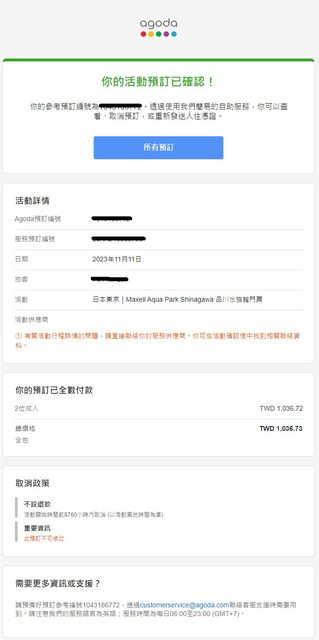 其他說明:安排自由行時不小心重複訂購了門票,卻又不能取消,好氣自己蠢成這樣