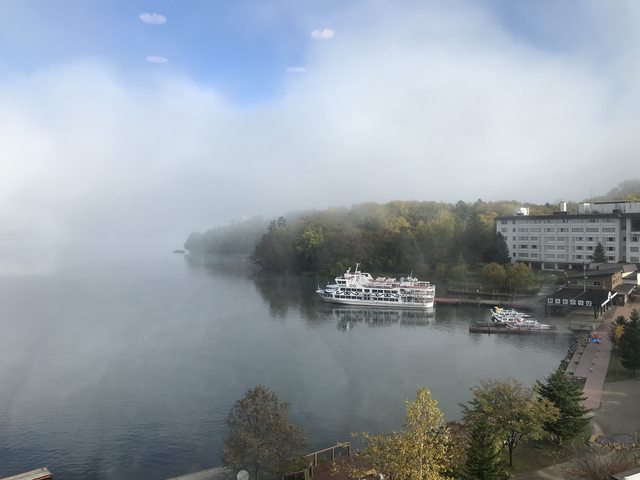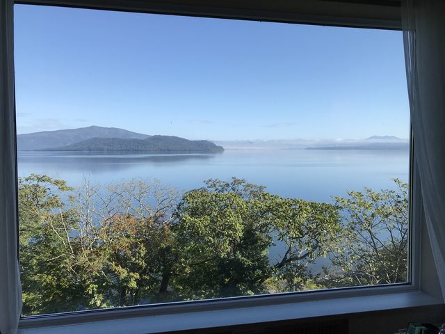 早上起床整個湖面都是霧,這是在房間窗戶拍的