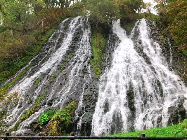 看完鮭魚後時間上也該回程了,路上經過オシンコシンの滝(雙美瀑布)停下來看一下