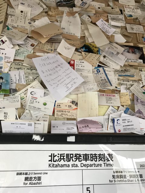 遊客們在牆上留下的便箋,在裡面發現台灣的高鐵車票XD