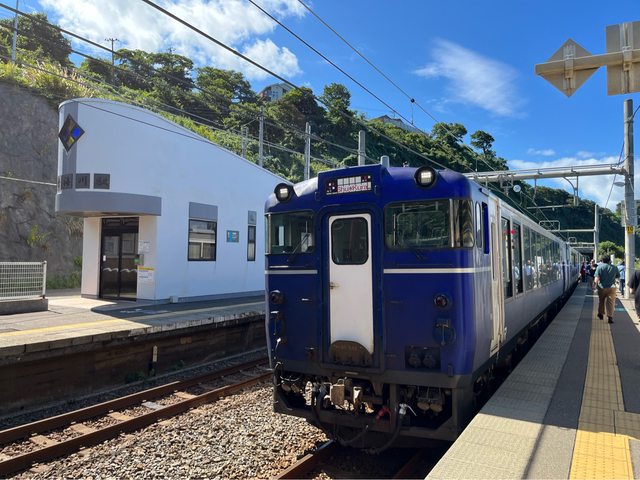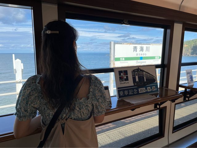 列車行駛約40分鐘抵達青海川,這個車站號稱全日本離海最近。我們這班車在本站停留6