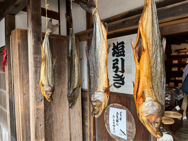 再往千年鮭kikkawa 出發,這是家販賣各種鮭魚產品的商店。店的側邊有桌椅可以略作休