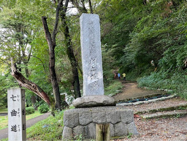 接著去村上城跡,停好腳踏車,沿著七曲道往上走。來的人並不多,我們從上去到下來,