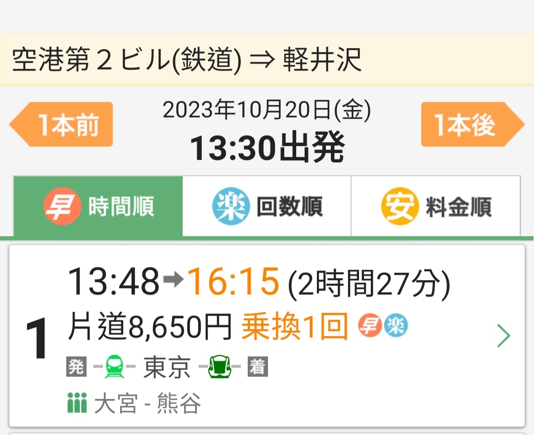 → leejones : 井澤-上野5280円,總共14513円,連15000円都不到。10/20 19:16