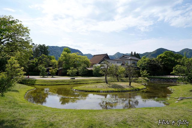 池泉庭園的形狀並非圓形,反而有那麼一點點像是古墳的鎖型。