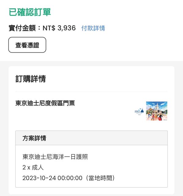 標題東京迪士尼海洋電子門票一張
