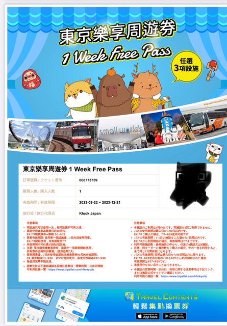 標題[讓售] 東京樂享周遊券*2/組