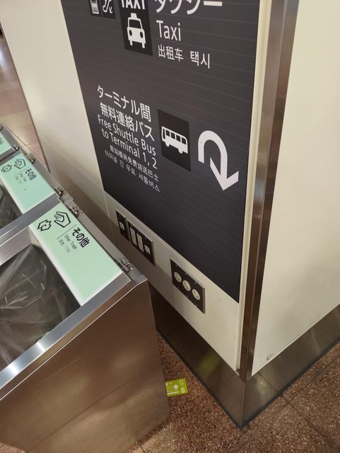 羽田二樓到著口走出去後過服務台的垃圾桶跟牆壁之間