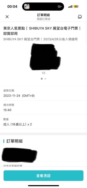 1. 讓售品項:11/24 Shibuya Sky 15:40 成人門票*2