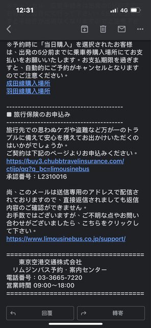 我已經預訂了今天下午16:10的利木津巴士前往成田機場