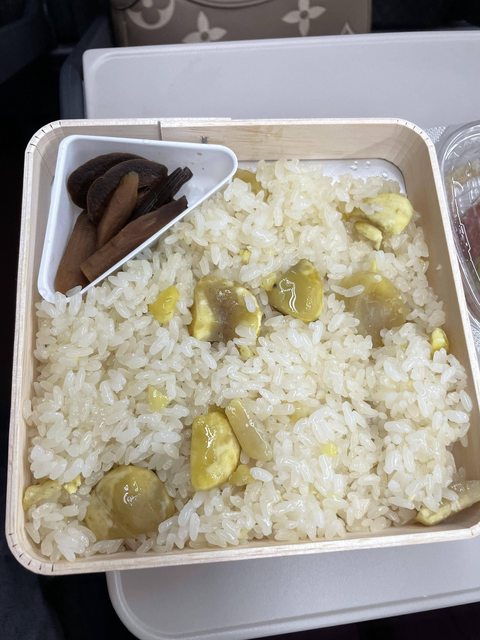 我們邊走邊逛要買什麼伴手禮。有的有興趣的先買了一顆路上試試,覺得好吃的話回程再買。因為有點晚了,我們簡單參拜一下就離開。我去竹風堂買了栗子銅鑼燒跟栗子飯(居然是從飯桶拿出來的熱飯),朋友在別家買了栗きんとん(栗子泥的感覺,很好吃,但期限只有三四天很短,所以我只買了一個當場吃吃看的而已),然後我們就去超市買生魚片跟牛肉洋蔥沙拉在新幹線上配著吃(本來想買豬排可是沒有單品了)。栗子飯的栗子好吃,飯就一點點甜甜的,我們買小份一起分剛好。