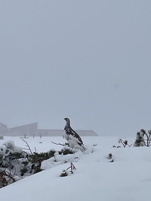 沒想到會下雪的我們冷爛,不過還是硬走了D路線去地獄谷(本來想走比較快,只要一小時的A路線,但他那個樓梯還在鏟雪,我們沒雪鞋下不去哈哈,有考慮滑下去但怕衣服磨壞就算了)。雖然結果走兩小時因為下雪什麼也看不到,但是路上有看到雷鳥,算是不幸中的大幸?