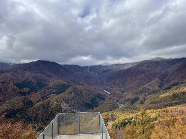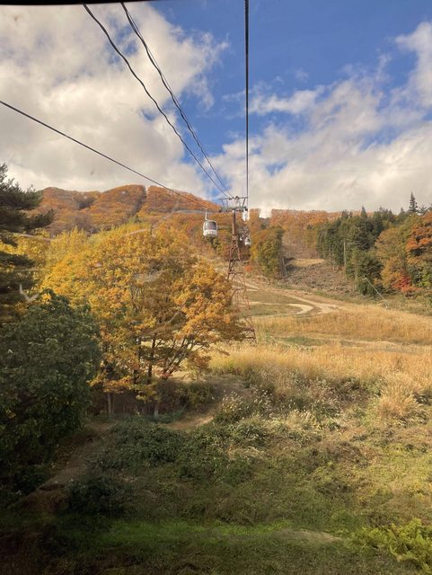 先在下面寄了行李之後,為了回程去長野不要太趕,我們先去問了站務員哪裡搭去長野的特急巴士。站務員問我們怎麼來的,我們說從信濃森上走路來的、她還很驚訝的說做的到嗎?XDD總之最後有問到,我們放心的拿出昨天的立山黑部單向票給他打九折買纜車票,就快樂的坐上去了。很可惜我們上去坐的是往前看,坐一半發現應該要坐往後看的!往下看超美!!而且今天天氣難得最好,名副其實的三段楓葉。