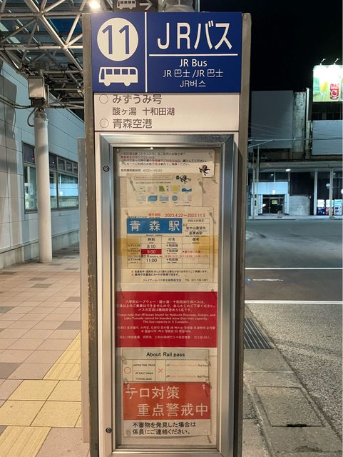 在青森駅前11號公車站牌候車