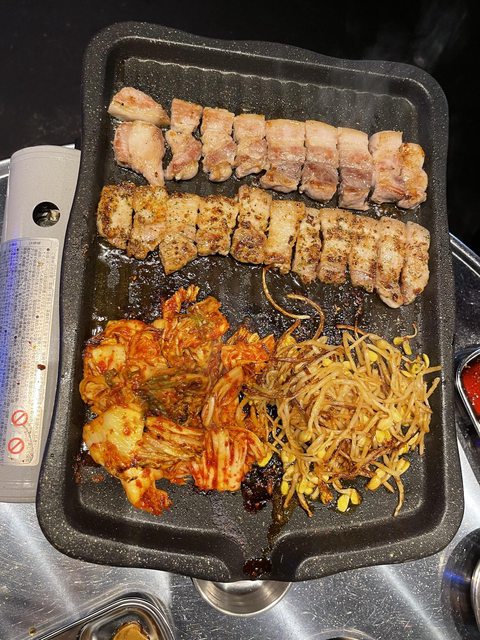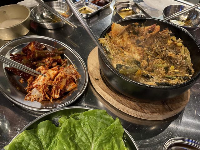 肉的部分店員會來幫忙烤,再自行夾著生菜&其他醃漬物一起吃,蠻不錯的