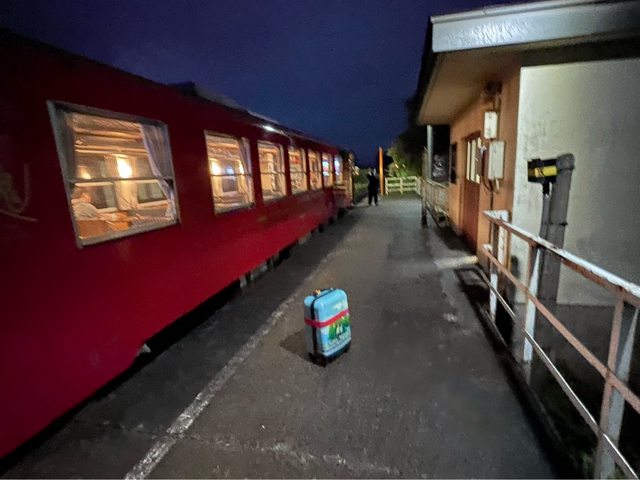 原本有寫信預約接駁車 可能是漏信沒有回應 乾脆自己搭車走路過去 順便體驗日本鄉下的田園風光 這段路天黑走起來很毛 沿路住戶門窗緊閉 路燈昏暗 十分鐘的路程好長好長