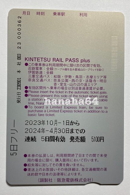 標題[讓售] 近鐵電車周遊券5日券plus 實體券1大