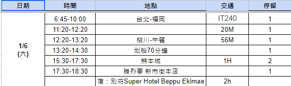 → snowrei : 九州沒甚麼記憶點?行程沒有別府、熊本、阿蘇等等 11/09 08:36