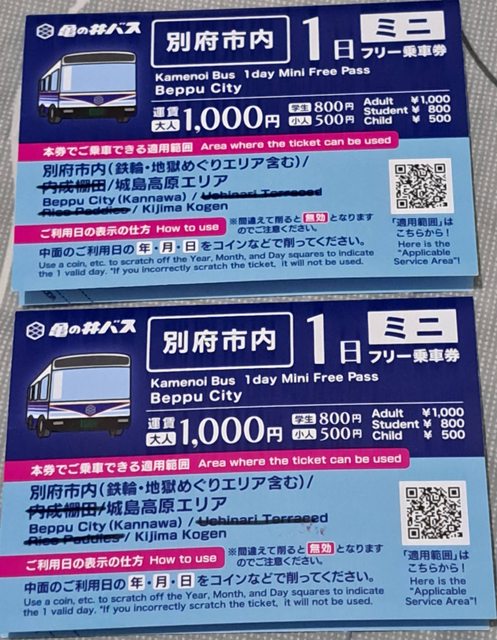 1. 讓售品項:九州別府龜之井路線巴士一日乘車券(迷你版)*2張
