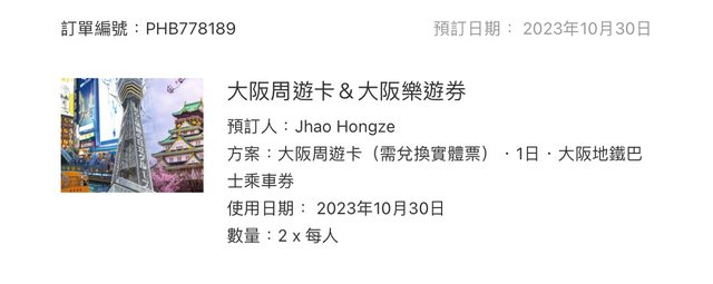 標題[讓售] 大阪週遊卡一日卷