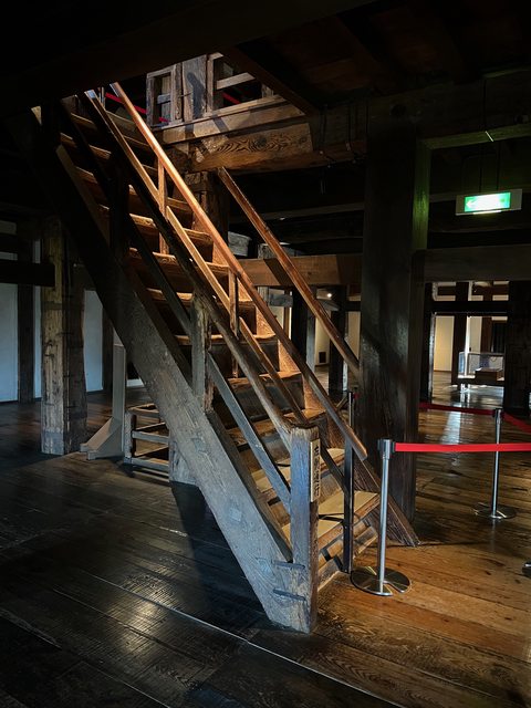 松江城天守閣一共四重五階,加上地下一階。內部展品豐富,解說詳盡,可以細細品味日