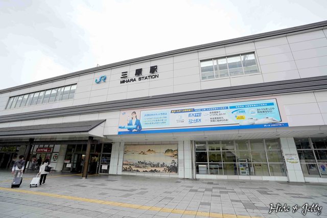 久違的三原駅好久不見啦,南口的外觀,真的很難想像這後面躲了一座古城。